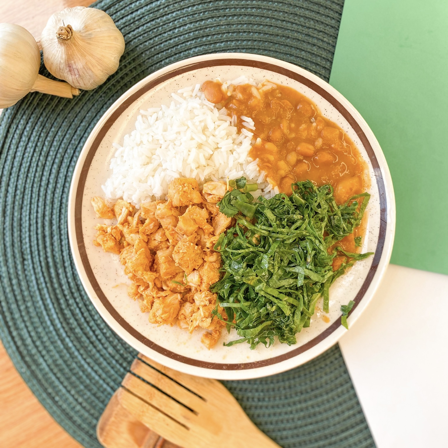 Ingredientes: Arroz, Feijão, filé de frango grelhado e Couve Refogada.