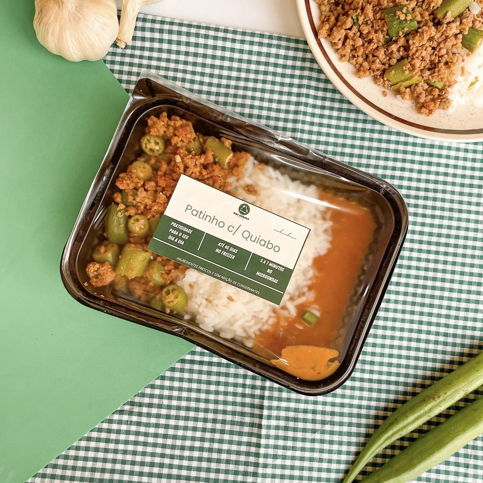 O autêntico sabor da roça! Patinho moído suculento com quiabo bem temperado, servido com arroz e feijão para uma refeição cheia de afeto e nutrição.